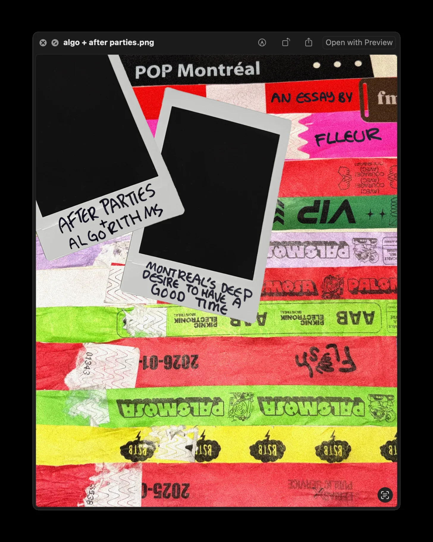 People here have a habit of saying, “Oh, it was so much better ten years ago, you just had to be there.” Every generation of creatives has heard the same complaint from the generation before; it’s a natural cycle. That’s not to discount, of course, the venues that have closed, the spaces that have changed, rising rents, or the politics that have made creative growth less affordable and less sustainable. Still, Montréal’s creative ecosystem is resilient, constantly re-emerging in different forms.